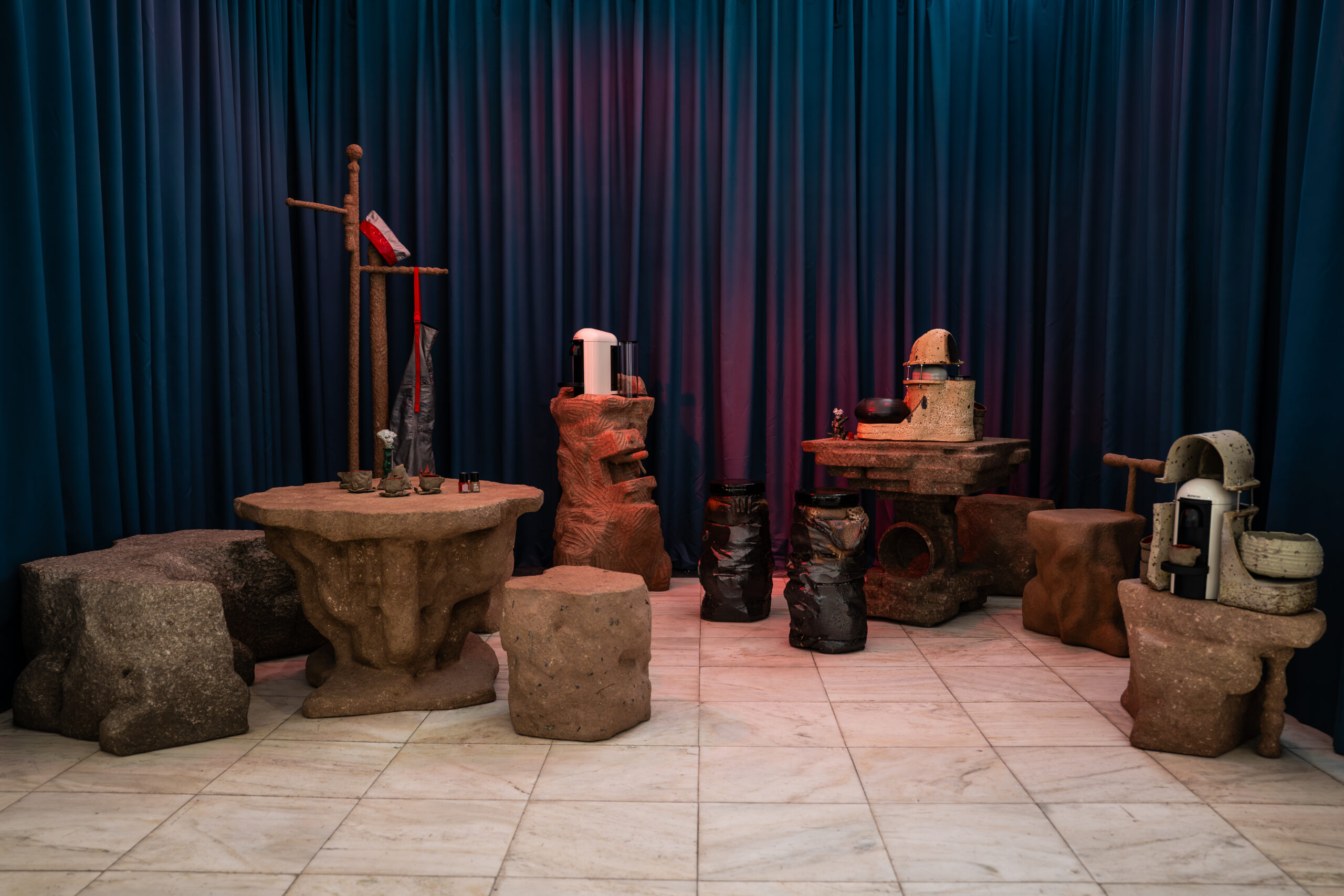 Egill Sæbjörnsson, known for his fusion of sculpture, performance, and digital animation, represented Iceland at the 2017 Venice Biennale, where he collaborated with fictional trolls. Theo Triantafyllidis navigates the intersections of gaming, virtual reality, and new media, expanding dialogues on digital embodiment and simulated worlds. Polina Miliou’s sculptural and installation-based practice, deeply rooted in material experimentation, has been featured at the Cycladic Museum and Carwan Gallery, crafting uncanny yet intimate spatial experiences through her tactile objects. George Vavatsis, combines functional design with sculptural expression, presenting his work internationally and most recently receiving the 1st Prize at the Biennale of Contemporary Keramics, Greece