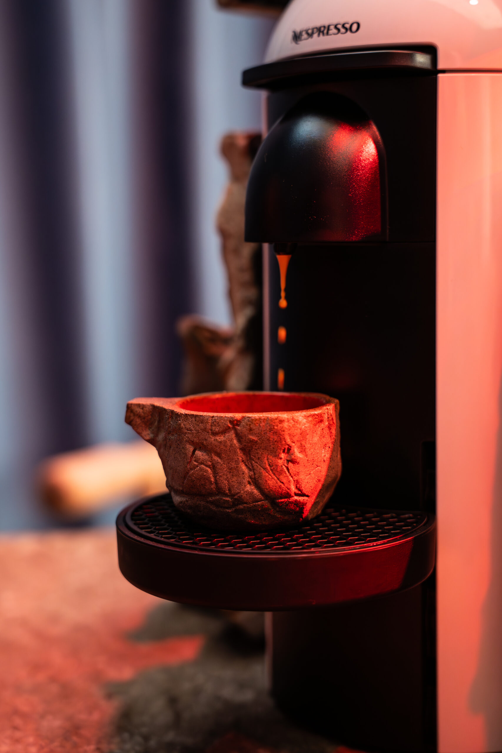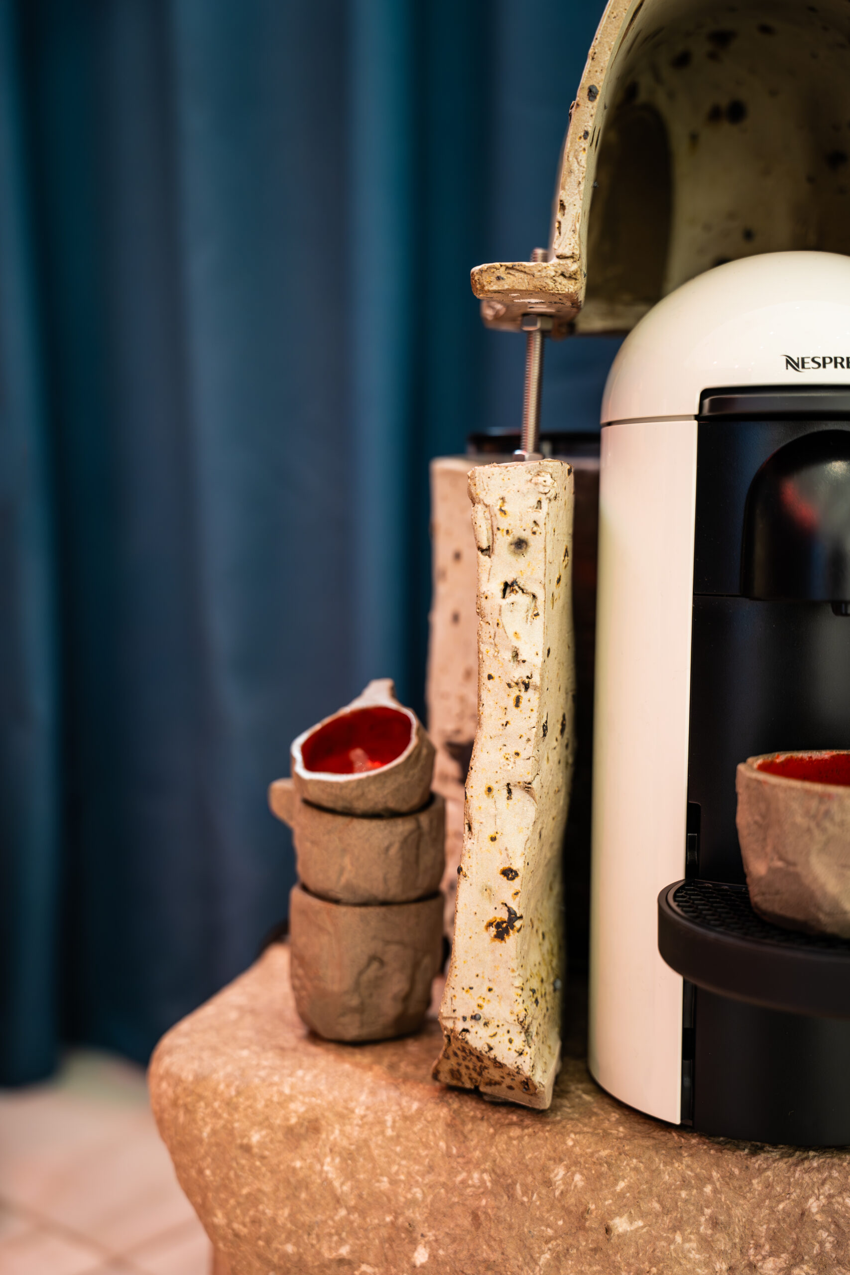 A constellation of handmade ceramic objects, sculptures, and furniture that evoke the aesthetics and gestures of coffee culture. Through these elements, the project transforms the everyday ritual of the espresso bar into a space of encounter, play, and dialogue, where art and design are symbolically merged in collective rituals.